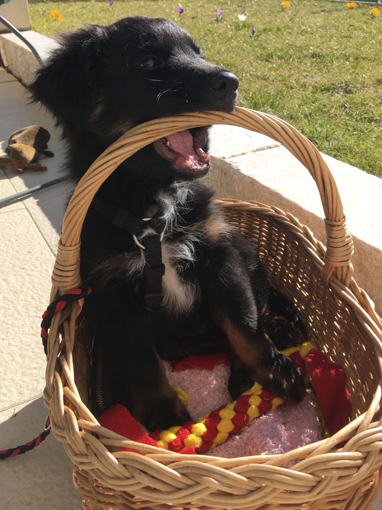 Auch wir besuchen die Welpenschule und zusätzlich haben wir schon vor geraumer Zeit mit einem Tricktraining begonnen.